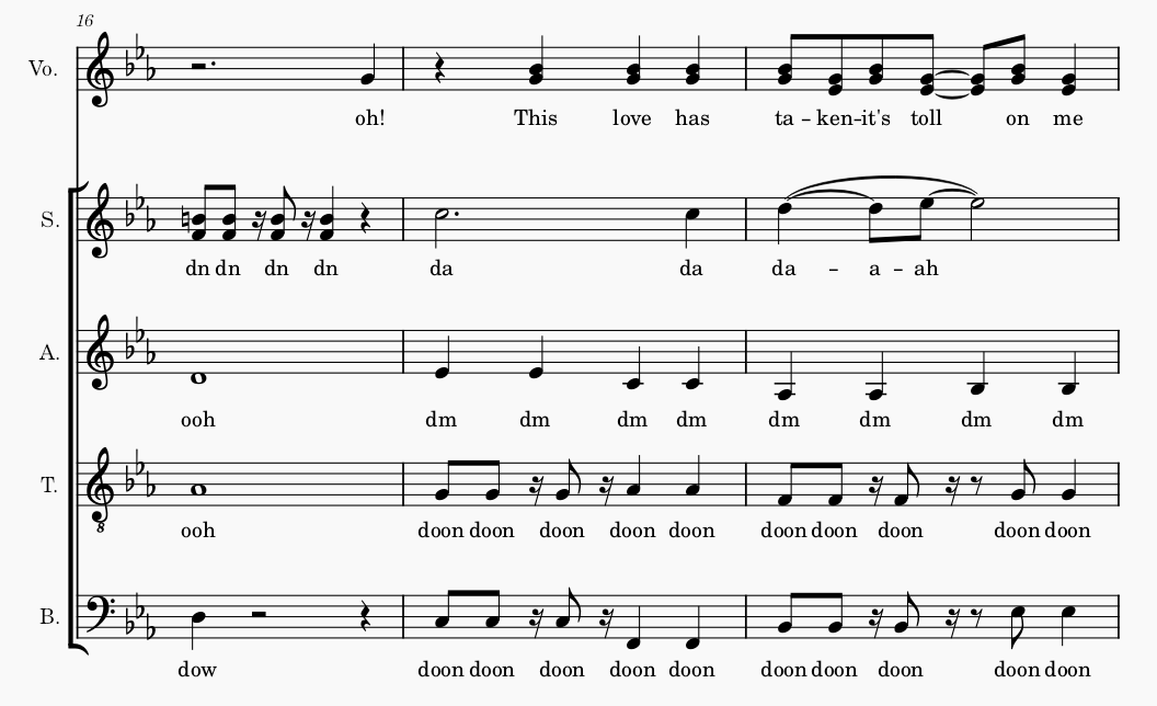 Arrangements of hit songs performed by colliegate and local acapella groups.
